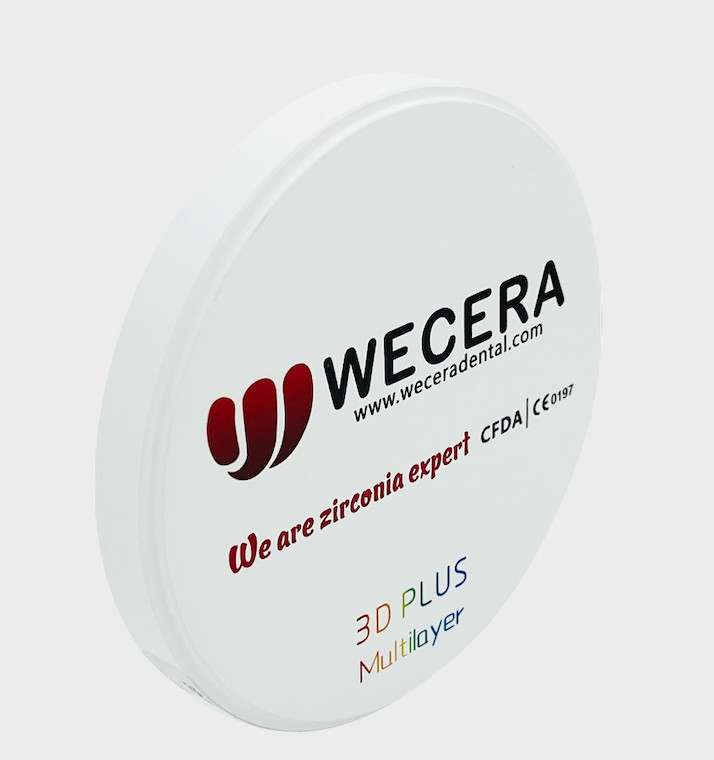 In summary, the WECERA 3D Plus Multilayer with its three-dimensional zirconium oxide composition is perfectly suited for dental milling centers aiming to produce durable, visually appealing, and highly functional dental restorations. Its multi-layered zirconium ceramics design, wide range of color options, and robust performance make it an essential material for modern dental applications.